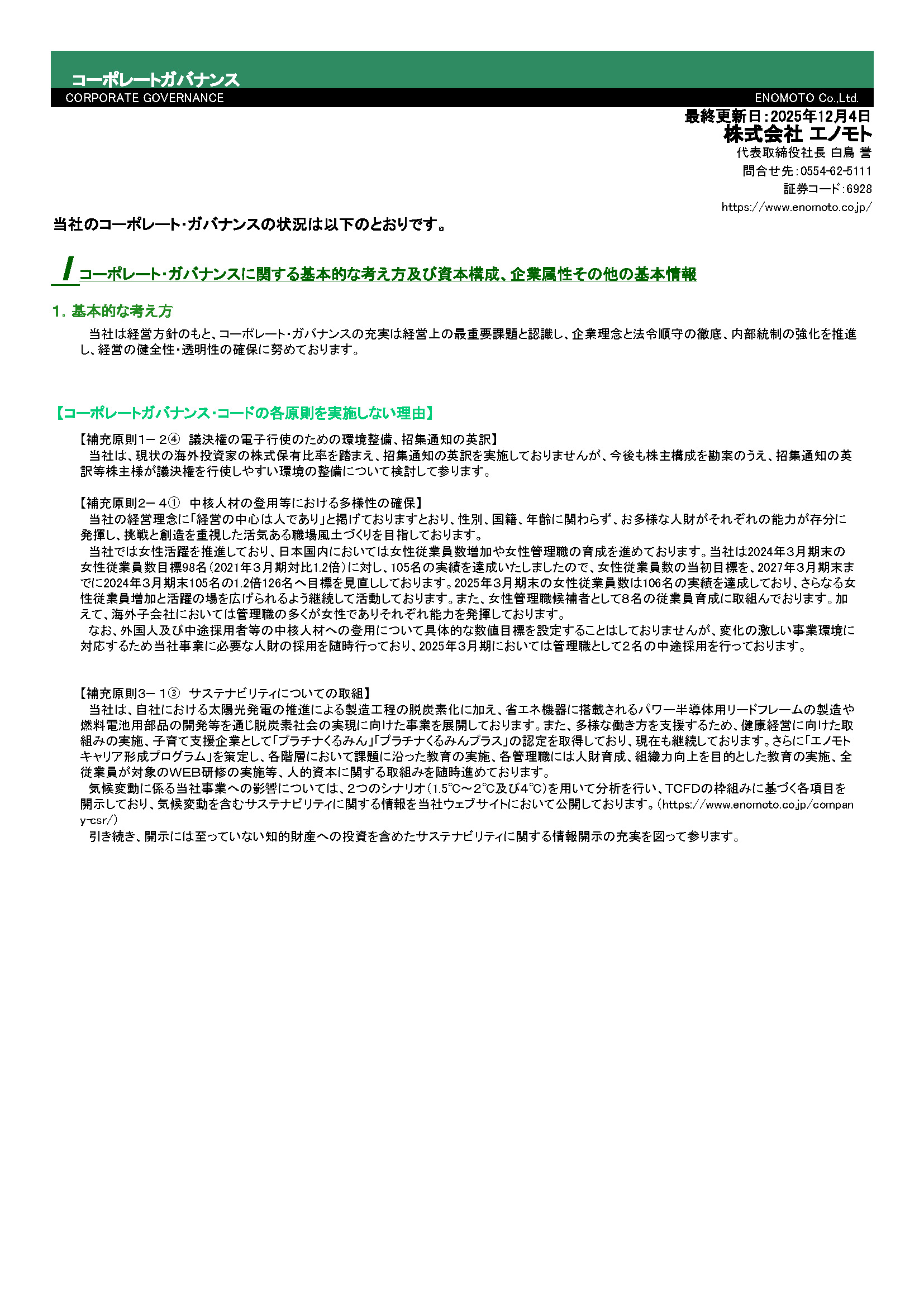 株主ならびに投資家の皆様におかれましては、今後ともエノモトの事業展開に対するご理解、ご⽀援のほどよろしくお願いいたします。