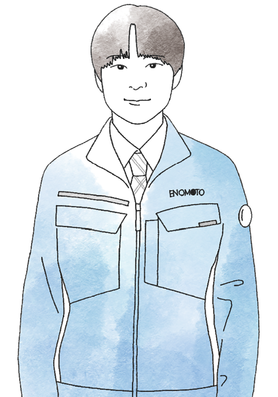 エノモトは会社や人の雰囲気がとてもいい会社です。また、人を大事にしてくれているので、福利厚生面は本当に充実しています。制度が整っており、従業員一人一人へのサポートも手厚く、自己啓発のために何事も挑戦しやすい環境だと思います。その安心感は、仕事とプライベートの両立にもつながります。エノモトの製品を通じて、一緒に皆さんの生活を支えてみませんか。