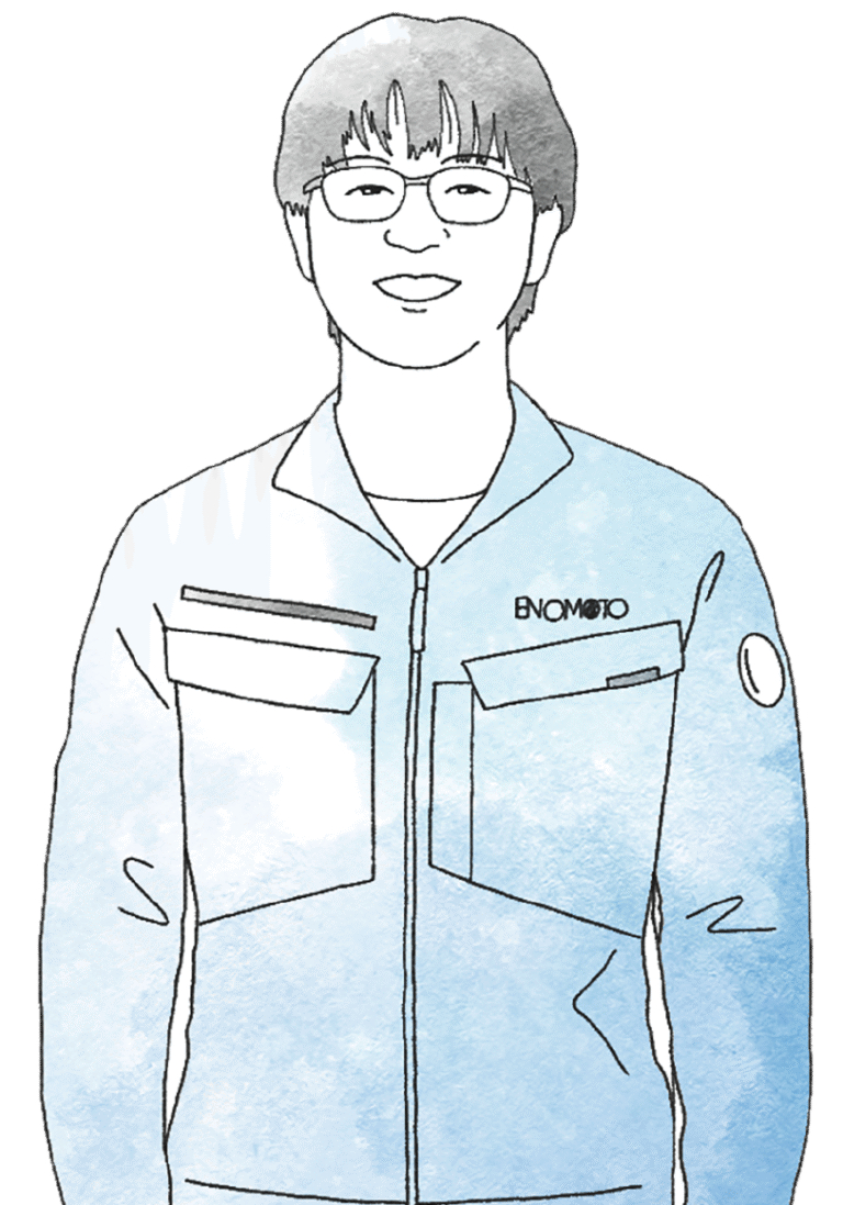 エノモトの社員は、とてもフレンドリーで話しかけやすく、質問にも丁寧に答えてくれます。頑張りたいという気持ちがあれば、それに応えて成長させてくれる会社だと思います。また、アプリで申請できる便利な制度や年間120日以上の休日など、働きやすい環境も整っています。自分の成長を実感しながら働くことができるので、ぜひ一緒に成長していきましょう。